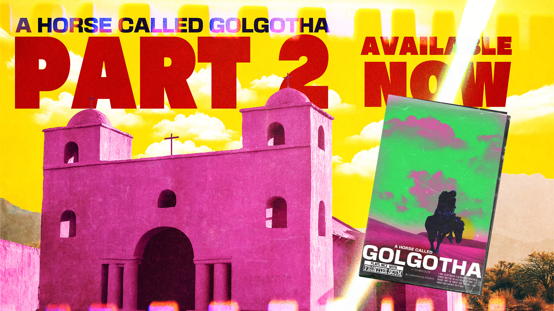 A Horse Called Golgotha (Italian: Un cavallo chiamato Golgota) is a 1964 acid Western film directed by 'Astrolich'. Due to general disapproval of the Western genre at the time, critical reception of the film following its release was lacking. While it debuted at the Spurs film festival, the film never received a wider release. Critics at the time praised its bold choice in color and theme, even claiming ‘the film was just as much a trip sober as it was under the influence’ (citation needed). Because of the film’s obscurity, the names of the cast members have been lost, and little has been found to reveal more about the film other than the ‘libretto della prima’ or premiere booklets, pamphlets that were handed out at the debut detailing the content of the film.